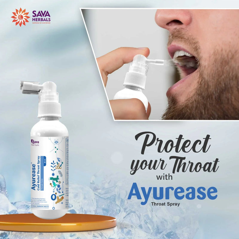 Ayurease Cold Relief Throat Spray by SAVA Herbals is a natural, effective for soothing throat irritation, relieving soreness, and promoting overall throat health. Whether you are dealing with a dry cough, irritation...